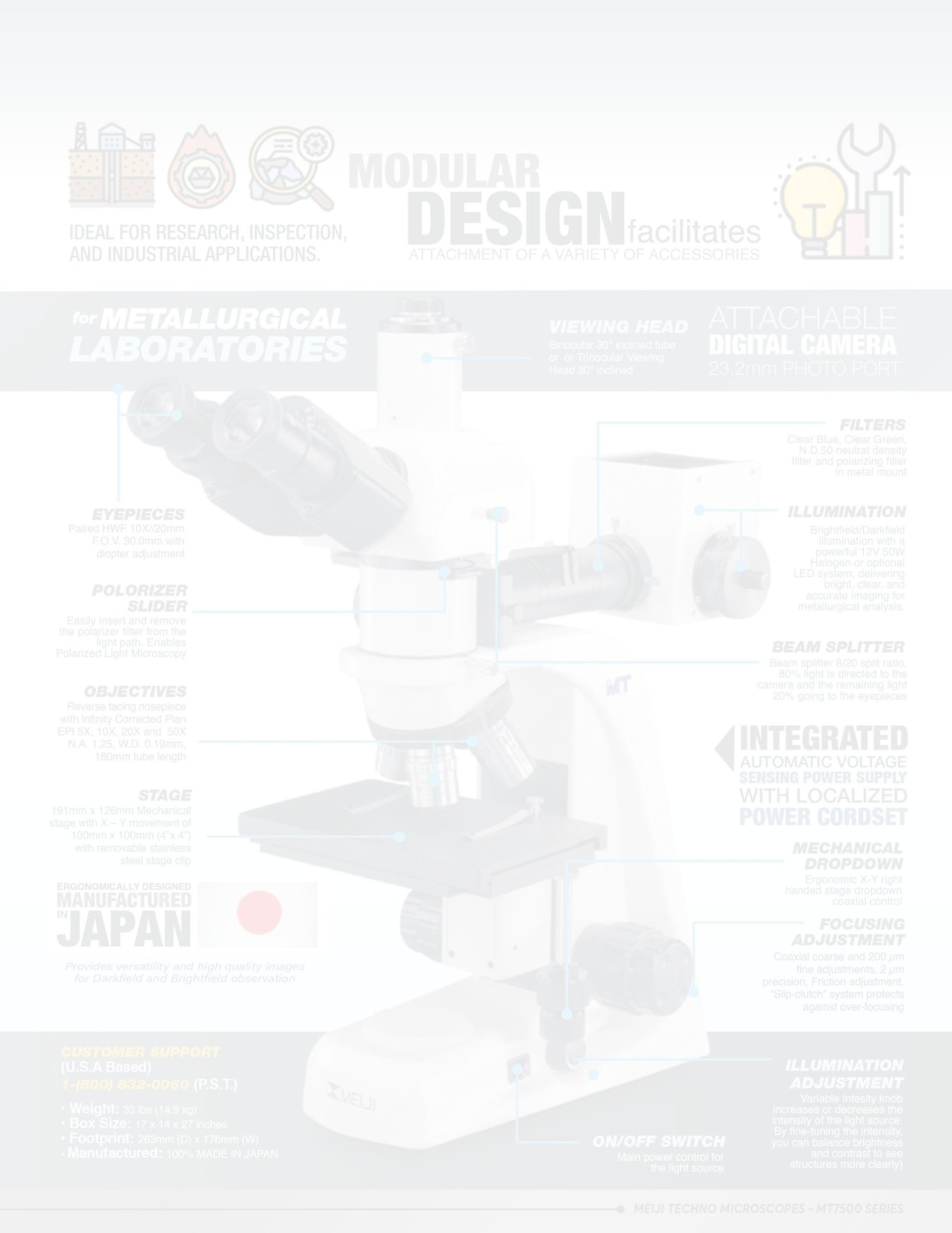 50W Vertical Koehler Illuminator with auto sensing power supply