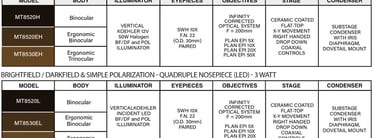 Vertical illuminator with full Koehler design equipped with 12 50W Halogen light source or LED, field iris, aperture iris and filter slots. Capable of brightfield, darkfield or simple reflected polarization technique. Includes blue clear, Green clear, Neutral density (DN50) filters in mounts.