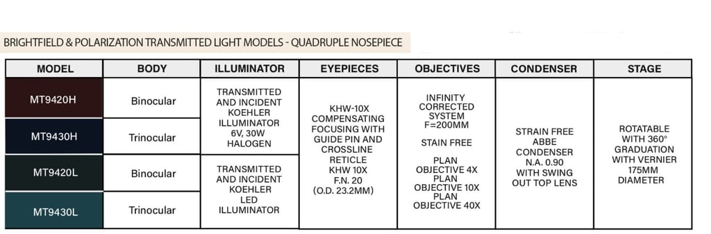 Trinocular models compatible with Digital, CCD, CMOS, Analog Meiji Techno adapters for photomicrography